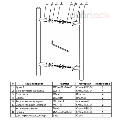 Комплектация Ручки (2 шт.) соединительная шпилька М8х150 мм, шестигранник.